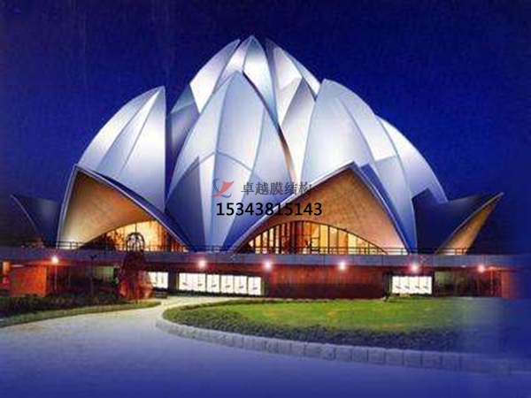 膜結(jié)構(gòu)使用壽命及特點:膜結(jié)構(gòu)車棚的篷布材質(zhì)是膜結(jié)構(gòu),而膜材的更大特點是強度高、耐久性好、防火難燃、自潔性好,不受紫外線影響,使用壽命長,一般15-30年。具有高透光率,透光率為13%,對熱能反射率73%,熱吸收量很少。正是因為這種劃時代的膜材料的發(fā)明,使膜結(jié)構(gòu)車棚成為現(xiàn)代化的永久建筑。