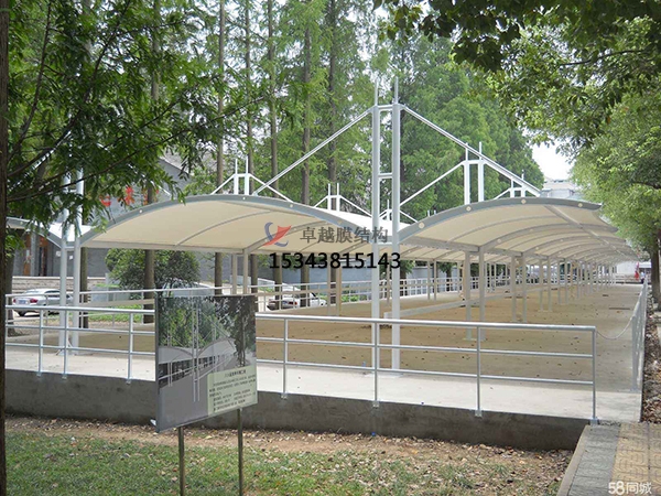 膜結構車棚主要有很多進口的原料,它的支架也使用了高超的制作工藝。很好的先是它的耐用性,它的材料是那種高強度的張拉膜,是一種可以使用40多年的材料,如果遇到狂風暴雨也不會有很大的破壞;還有它的藝術性,它的造型師非常美觀的,尤其是它的曲線美;經濟性,把車放在里面,可以減緩損壞的速度,增加車輛的使用壽命;透光性也是非常好的,也可以阻擋紫外線的輻射;重量也是非常輕的,在發(fā)生坍塌或者危險的時候,可以保護棚下面的人或者物品的安全。