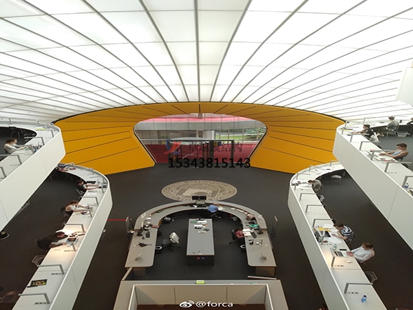 二、膜結(jié)構(gòu)建筑可以實(shí)現(xiàn)無(wú)柱大跨度。只需要較少的結(jié)構(gòu)鋼來(lái)支撐,可以設(shè)計(jì)用于大跨度、無(wú)障礙空間。這使得薄膜結(jié)構(gòu)成為體育場(chǎng)屋頂?shù)却罂缍葢冶劢ㄖ睦硐脒x擇。