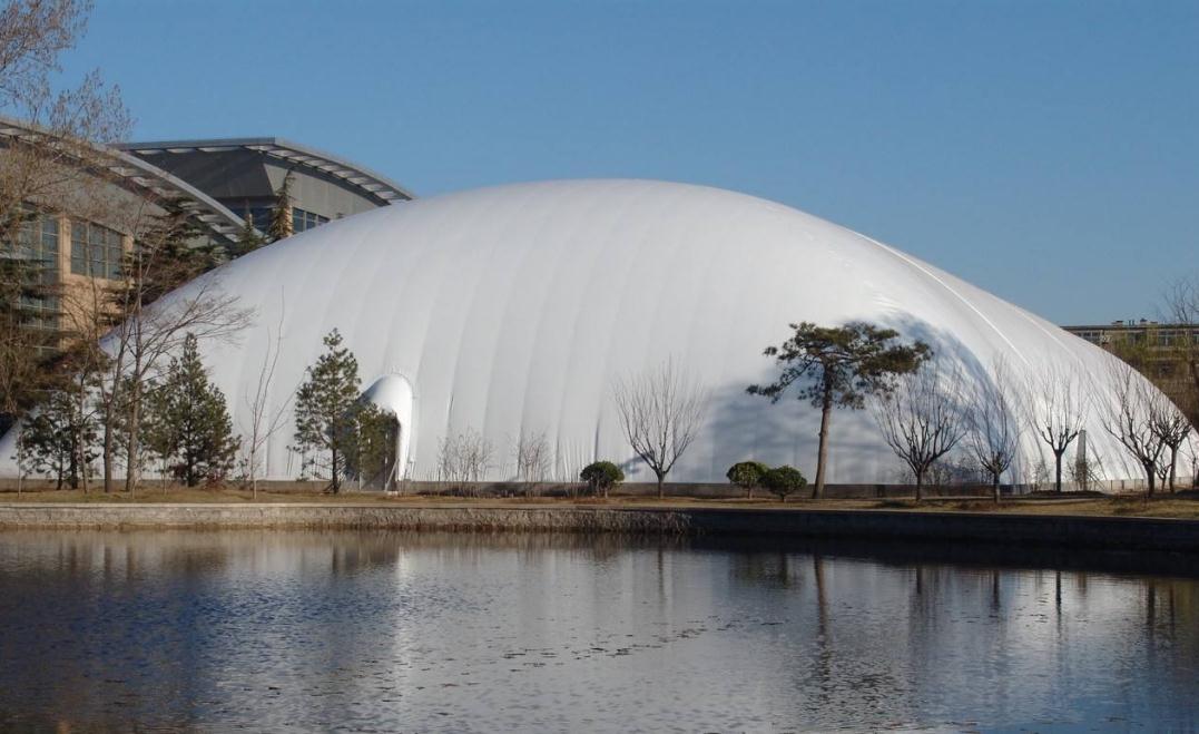 充氣膜體育館是用特殊的建筑膜材做外殼,配備一套智能化的機電設備在氣膜建筑內(nèi)部提供空氣的正壓,把建筑主體支撐起來的一種建筑結(jié)構(gòu)系統(tǒng)。