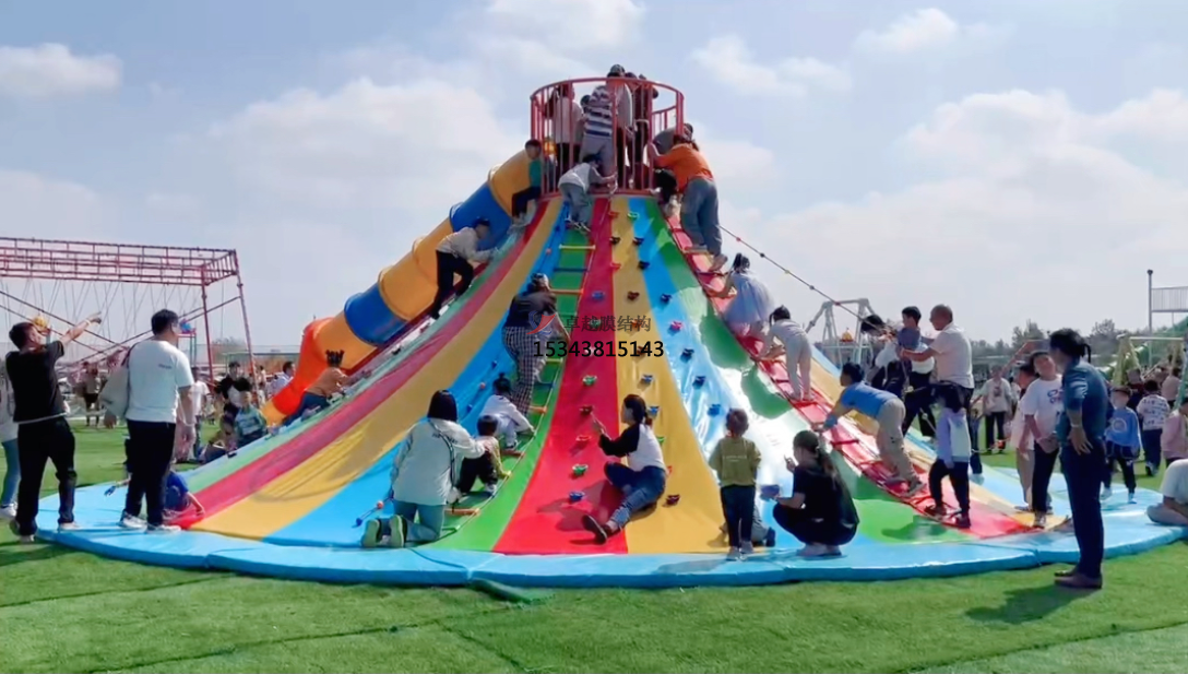 火山攀巖---它可以塑造出火山的外形,使整個(gè)游樂設(shè)備的外觀看起來像火山,從而得名火山攀巖。這種膜結(jié)構(gòu)能夠很好地貼合設(shè)計(jì)需求,通過一定的設(shè)計(jì)和加工工藝,將膜材覆蓋在支撐結(jié)構(gòu)上,構(gòu)建出火山形狀的外觀,為游樂場(chǎng)所增添獨(dú)特的景觀元素。
