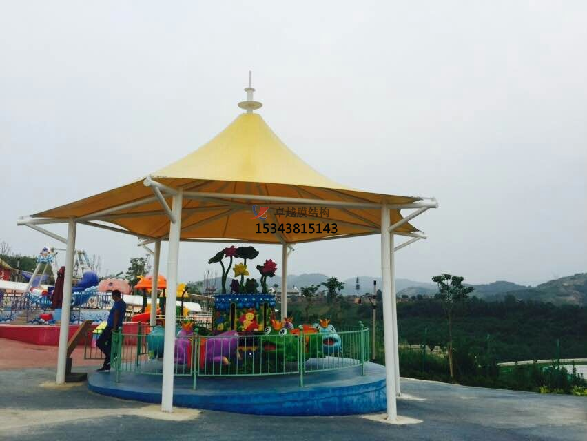 3:簡易拆卸,移動和可以更換性能,游樂園的建筑和其他項目建筑的很大不同是,游樂園需要定期或者不定期做一些改造或者調整,這樣游客才會重復來玩。膜結構恰好能滿足這一點,比如,同樣是一個休息亭,換個顏色,或者換個造型,只需要增加或者減少局部的鋼結構桿件,換一塊膜就可以搞定,傳統(tǒng)的結構是沒辦法實現(xiàn)的。