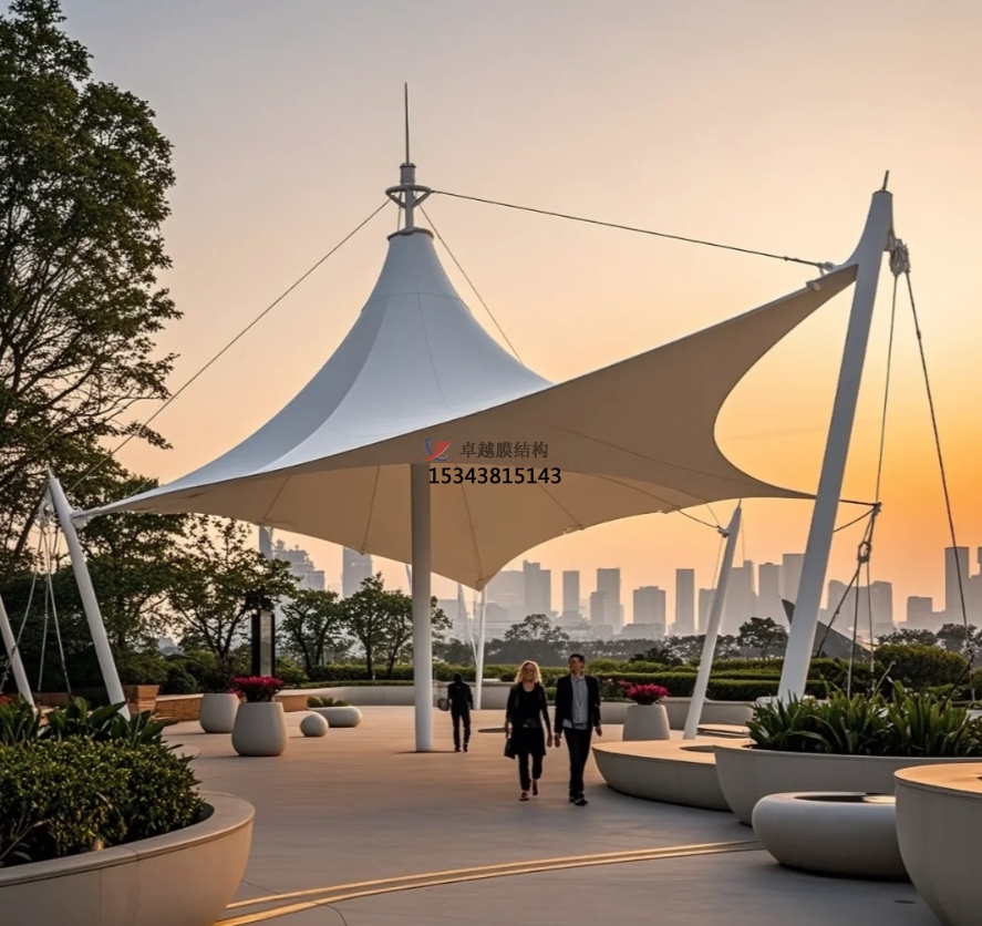 景觀膜結(jié)構(gòu)以其獨(dú)有的輕質(zhì)高強(qiáng)、藝術(shù)美感與經(jīng)濟(jì)環(huán)保優(yōu)勢(shì),在公共設(shè)施、體育場(chǎng)館、商業(yè)空間等諸多領(lǐng)域綻放光彩。它不僅為人們創(chuàng)造了實(shí)用且美觀的空間環(huán)境,更推動(dòng)著現(xiàn)代景觀設(shè)計(jì)不斷邁向新的高度,成為城市與自然和諧共生的重要紐帶,持續(xù)為我們的生活帶來(lái)更多驚喜與美好。