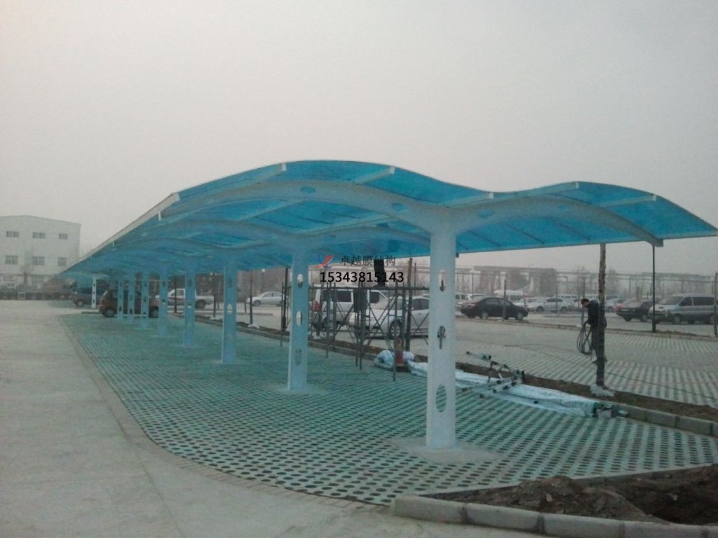 商業(yè)廣場雨棚搭建設(shè)計特別適合用來建造城市標(biāo)志性建筑的屋頂,如體育與娛樂性場館,需有廣告效應(yīng)的商場、餐廳等。城市的交通樞紐是城市命脈的關(guān)鍵性建筑,使用功能要求建筑物各組成單元的標(biāo)志明確。因而近來年,這類建筑越來越多采用膜結(jié)構(gòu)。建筑膜材料的使用壽命為 25 年以上。在使用期間,在雪或風(fēng)荷載作用下均能保持材料的力學(xué)形態(tài)穩(wěn)定不變。建成于 1973 年的美國加州 La Verne 大學(xué)的學(xué)生活動中心是已有 23 年歷史的商業(yè)廣場雨棚搭建建筑.跟蹤測試與材料的加載與加速氣候變化的試驗,證明它的膜材料的力學(xué)性能與化學(xué)穩(wěn)定性指標(biāo)下降了 20 %至 30 %,但仍可正常使用。膜的表層光滑,具有彈性,大氣中的灰塵、化學(xué)物質(zhì)的微粒極難附著與滲透,經(jīng)雨水的沖刷建筑膜可恢復(fù)其原有的清潔面層與透光性。