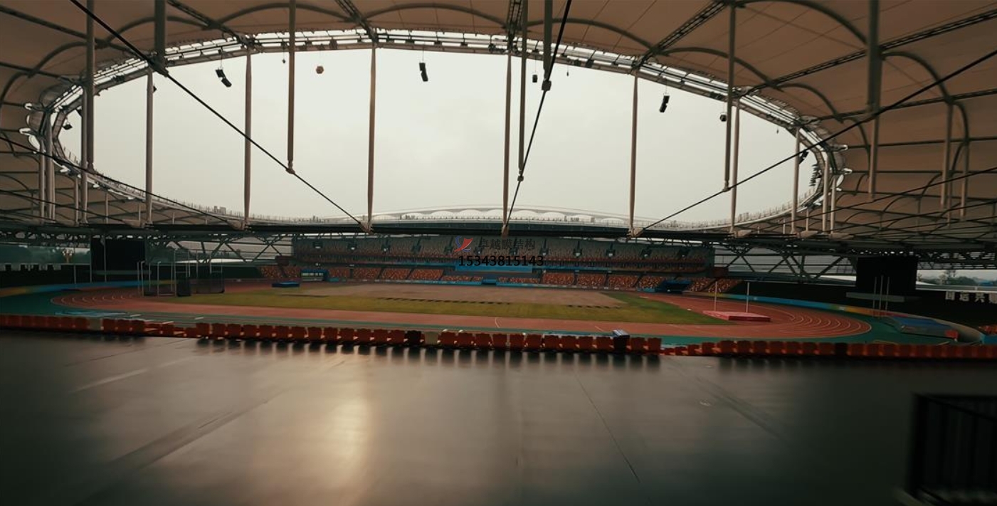 此外,膜結(jié)構(gòu)看臺還具備出色的聲學(xué)效果。膜材料對聲音的反射與吸收特性,使得看臺內(nèi)的聲音分布更加均勻,觀眾能夠清晰地聽到比賽現(xiàn)場的每一個細節(jié),無論是運動員的奔跑聲、球與地面的撞擊聲,還是觀眾的歡呼聲,都能得到完美的呈現(xiàn)。
