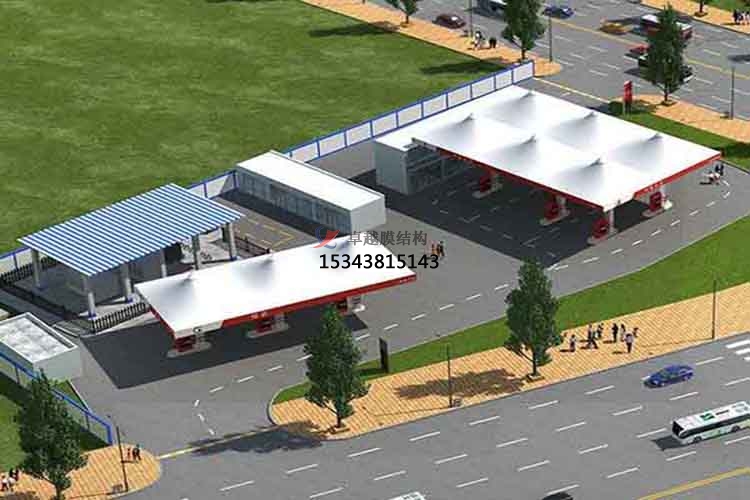膜結(jié)構(gòu)加油站是一種現(xiàn)代化的永久建筑,膜結(jié)構(gòu)車(chē)棚的膜材的更大特點(diǎn)是強(qiáng)度高、耐久性好、防火難燃、自潔性好,不受紫外線(xiàn)影響,使用壽命長(zhǎng),一般15-30年。所以在安裝時(shí)膜材需要非常注意。