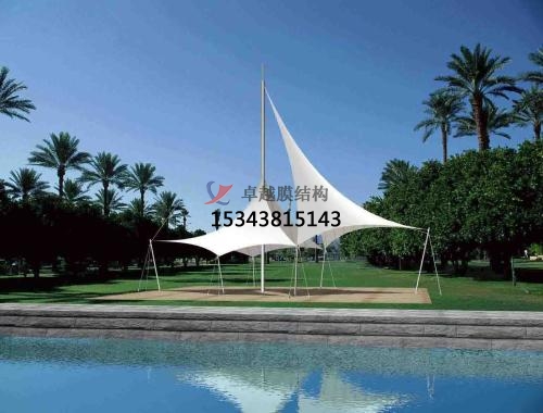 pvc膜材由聚氯乙烯(pvc)涂層和聚酯纖維基層復合而成,應用廣泛,價格適中。一般pvc膜的耐用年限,依使用環(huán)境不同在10~12年。為了改善pvc膜材的耐侯性,近年來已研發(fā)出以氟素系樹脂在pvc涂層材的表面再作處理,以改善其耐侯性及防污性的新膜材。