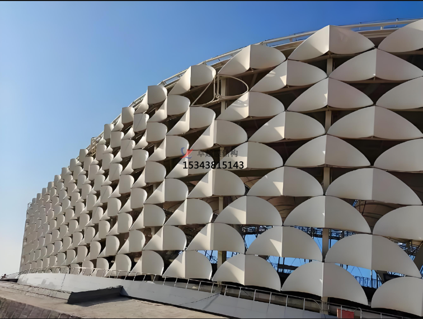 ?。撼1挥糜隗w育場館、展覽館、會議中心等大型公共建筑的屋頂和墻面。例如,北京奧運(yùn)會的 “水立方”,其外立面使用了 ETFE 膜材(與 PTFE 網(wǎng)格覆膜有相似特性),而 PTFE 網(wǎng)格覆膜也可用于類似建筑,能提供良好的采光和獨(dú)特的視覺效果,同時減輕建筑自重,實現(xiàn)大跨度的空間結(jié)構(gòu)。