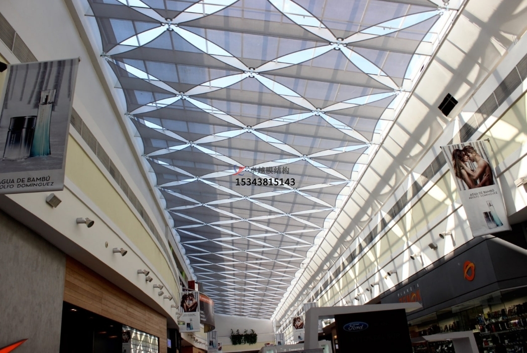 此外,PTFE膜結(jié)構(gòu)的薄膜具有一定的透光性,能夠有效利用自然光線,降低室內(nèi)照明能耗,能夠遮擋紫外線和紅外線,減少太陽(yáng)輻射對(duì)建筑內(nèi)部的熱負(fù)荷,實(shí)現(xiàn)能源的節(jié)約和環(huán)境的保護(hù);而且PTFE膜結(jié)構(gòu)能夠通過(guò)不同的張拉和固定方式,創(chuàng)造出各種形態(tài)的建筑設(shè)計(jì)。它可以形成曲線、弧線、折線等多樣化的形狀,滿(mǎn)足建筑師對(duì)于獨(dú)特外觀和創(chuàng)新設(shè)計(jì)的需求。