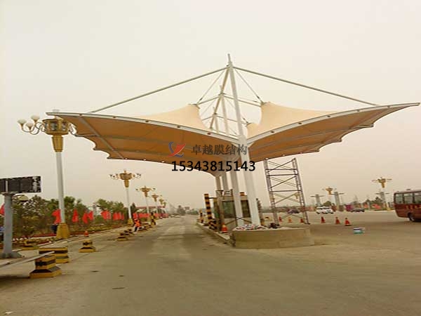 阻燃性和耐久性:采用PTFE膜材的張力膜的耐熱性、耐候性、抗藥性、高強度、防火功能,且不易老化,長期使用后仍能保持其原有的強度、拉膜可分為永久性和半永久性結(jié)構(gòu)??缍瓤臻g大:膜結(jié)構(gòu)建筑用的膜材料很輕,每平方米重約1公斤。因此,拉伸膜可以克服傳統(tǒng)結(jié)構(gòu)在無柱式大跨度建筑中遇到的困難,可以創(chuàng)造出一個巨大的柱自由空間。