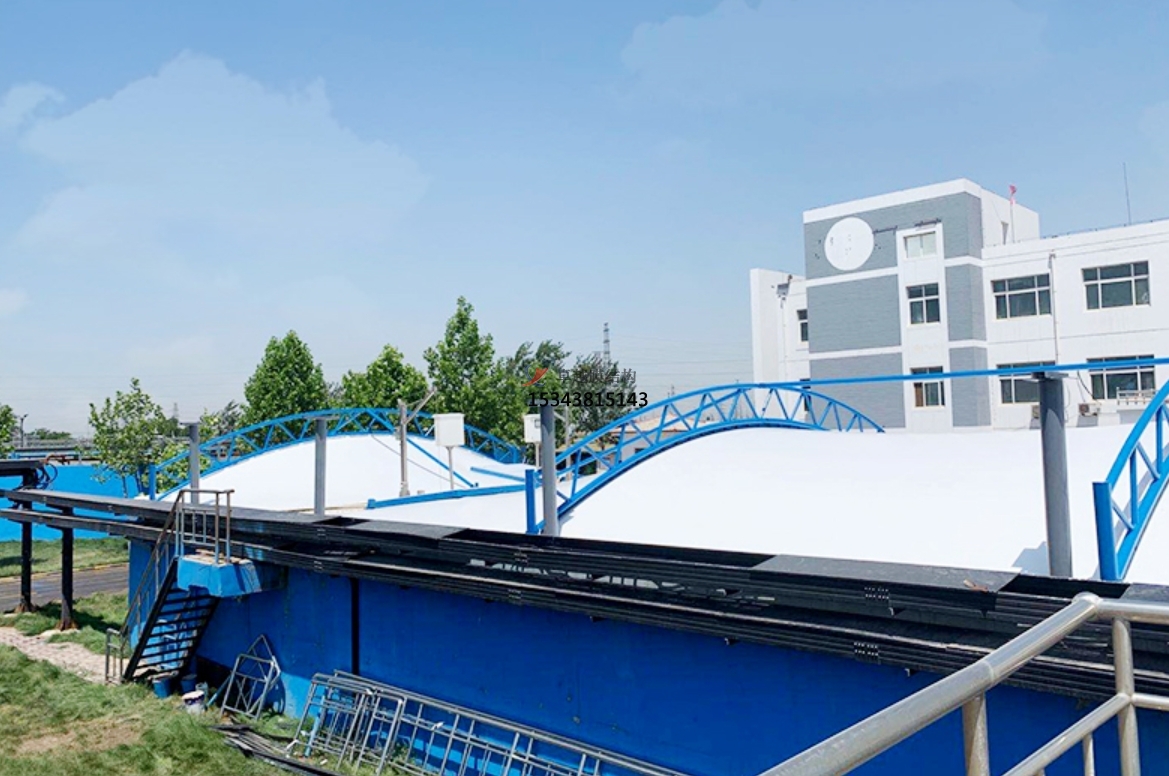 污水池反吊膜技術(shù)是一種利用膜材反吊的原理,將鋼結(jié)構(gòu)在外將膜材懸吊,利用膜材的氣密性特點(diǎn),將廢氣密封在一個密閉的空間,進(jìn)而將凈化后的廢氣排出池外,達(dá)到排放標(biāo)準(zhǔn)的技術(shù)。它采用以鋼構(gòu)為支撐,膜材反吊覆蓋的膜結(jié)構(gòu)形式,即抗腐蝕能力很強(qiáng)的新型環(huán)保膜材將廢氣量住,而鋼結(jié)構(gòu)則在外面將膜懸吊起來。