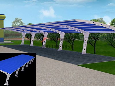 第點,膜結(jié)構(gòu)停車棚頂部封板采用茶色(顏色可挑選)陽光板封頂,與車棚整體骨架用壓條鉚接固定,耐酸堿腐蝕,有足夠強度對棚內(nèi)車輛起到保護作用;