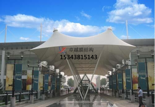 一個(gè)城市的中心區(qū)反映一個(gè)城市的地理風(fēng)貌和民族風(fēng)情,同時(shí),也是一個(gè)城市文化發(fā)展程度的標(biāo)志。而景觀設(shè)計(jì)要求其具有廣泛的可讀性、雅俗共賞,既有超凡脫俗的藝術(shù)價(jià)值,又能使大眾喜聞樂(lè)見(jiàn)與大眾息息相通。膜結(jié)構(gòu)以其輕盈飄逸的造型、柔美并帶有力量的曲線和大跨度和大空間的鮮明個(gè)性和標(biāo)識(shí)性,應(yīng)用于城市小品設(shè)計(jì)中。