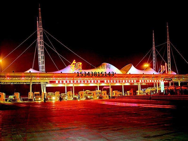 一、造型獨(dú)特,辨識(shí)度高,由于膜材重量輕,適合收費(fèi)站這種大跨度的建筑,而且是采用張力結(jié)構(gòu)所以在造型設(shè)計(jì)上具有很大的優(yōu)勢(shì),可以實(shí)現(xiàn)非常具有藝術(shù)氣息的造型。