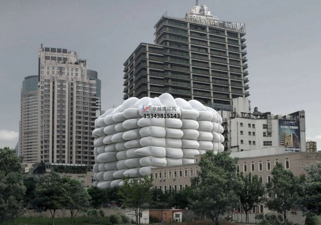 戶(hù)外充氣膜的核心結(jié)構(gòu)基于高強(qiáng)度的薄膜材料,通過(guò)內(nèi)部持續(xù)充氣產(chǎn)生壓力差,從而使膜體保持穩(wěn)定的形狀。這種薄膜材料通常具備出色的抗拉強(qiáng)度、抗紫外線性能以及耐候性,能夠抵御各種惡劣的自然環(huán)境。充氣膜的支撐系統(tǒng)相對(duì)簡(jiǎn)潔,摒棄了復(fù)雜的鋼結(jié)構(gòu)或混凝土框架,僅依靠少量的錨固點(diǎn)與地面相連,大大簡(jiǎn)化了施工過(guò)程,同時(shí)也降低了建筑成本。?