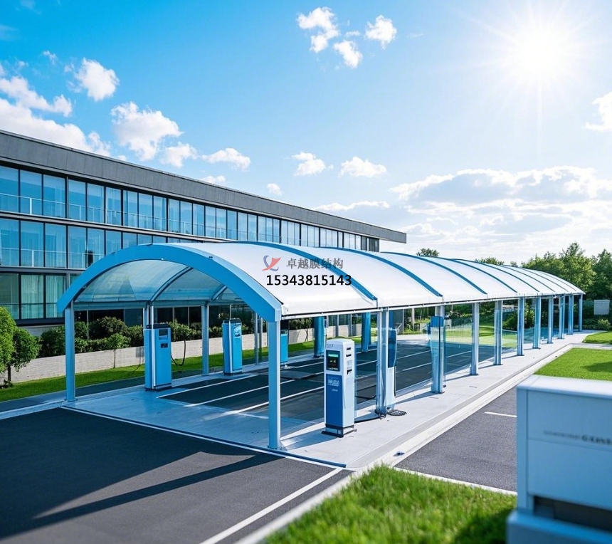 在全球大力推進(jìn)新能源汽車開(kāi)展的浪潮中,充電站作為關(guān)鍵配套設(shè)施,其建造正如火如荼地進(jìn)行。而充電站膜結(jié)構(gòu)罩棚,憑仗本身共同優(yōu)勢(shì),逐漸成為很多充電站建造的理想挑選,為新能源汽車的充電進(jìn)程供給了牢靠保證,一起也為城市增添了異樣的現(xiàn)代氣味。