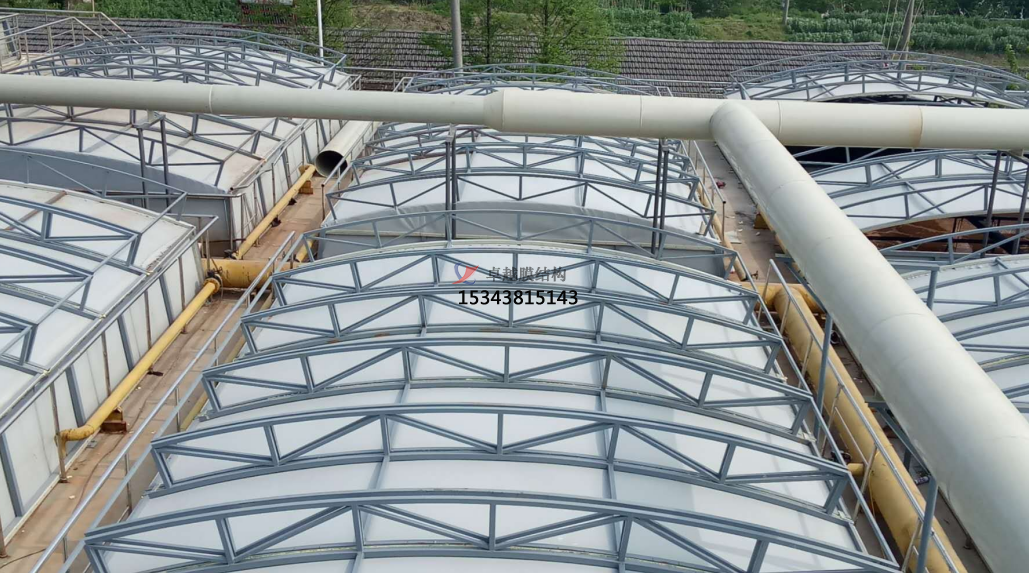 反吊膜用在污水廢氣治理上效果明顯.膜材占了很大的優(yōu)勢(shì)。目前市面上許多的反吊膜工程都是采用PVDF膜材.當(dāng)然能用在膜結(jié)構(gòu)上的膜材不止這一種,還有ETFE膜材、PTFE膜材等,但相對(duì)來(lái)說(shuō)PVDF膜材是較為適合做反吊膜的,原因在于: