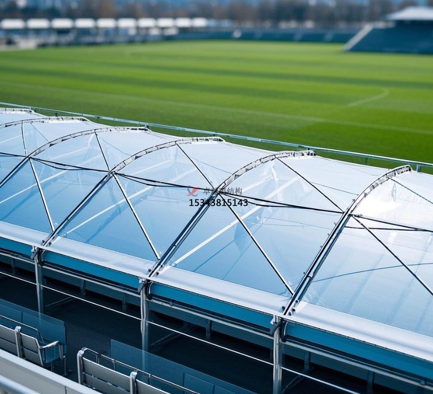 骨架式膜結(jié)構(gòu)在大型體育場(chǎng)館中廣泛應(yīng)用,其穩(wěn)定的鋼結(jié)構(gòu)骨架支撐大面積膜材,形成開(kāi)闊的內(nèi)部空間。以足球場(chǎng)看臺(tái)為例,骨架式膜結(jié)構(gòu)可覆蓋整個(gè)觀眾區(qū)域,為上萬(wàn)人提供舒適觀賽空間,且內(nèi)部無(wú)立柱阻擋視線(xiàn),觀眾容量比傳統(tǒng)有柱看臺(tái)增加 10% - 15%。?