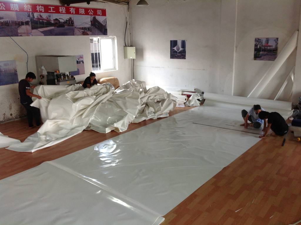除找形外,膜結(jié)構(gòu)設計的另一大特點是需要進行裁剪設計,即在完成找形、荷載分析和構(gòu)件設計(含膜材、索、支承鋼結(jié)構(gòu)的設計等)并獲批準后,要購買膜材料,進行裁剪設計,加工制作膜面。本文臨朐永鑠膜結(jié)構(gòu)工程將就膜結(jié)構(gòu)加工制作階段的工作內(nèi)容,如裁剪設計的原則、裁剪方法、膜材連接方法與接縫設計、裁剪加工圖、膜面制作工序與質(zhì)量要求等,展開論述。