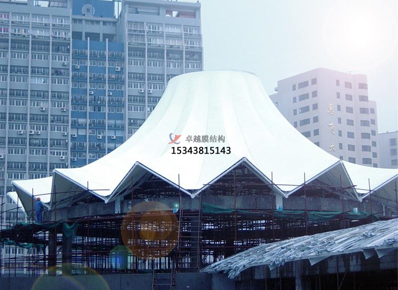 而在膜結(jié)構(gòu)資料上,經(jīng)過支撐和張拉索就能構(gòu)成。所以膜結(jié)構(gòu)停商業(yè)廣場雨棚搭建能夠經(jīng)過自身柔美的曲線和周圍的藝術(shù)景觀結(jié)合起來,給人以美的享用。