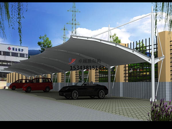2、較為簡(jiǎn)單的方法是將許多膜結(jié)構(gòu)車棚膜片排成一排并加以固定,不過(guò)不能夠防水;