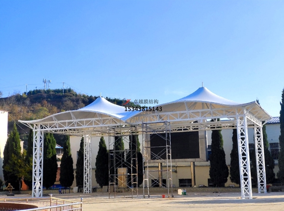 遮陽防雨:舞臺膜結構遮陽棚能夠有效地遮擋陽光和雨水,為舞臺上的演員和觀眾提供一個涼爽、舒適的環(huán)境。在戶外演出或活動中,強烈的陽光和突如其來的雨水往往會影響觀眾的觀看體驗,甚至對演出設備造成損害。而舞臺膜結構遮陽棚的出現(xiàn),則有效地解決了這一問題。