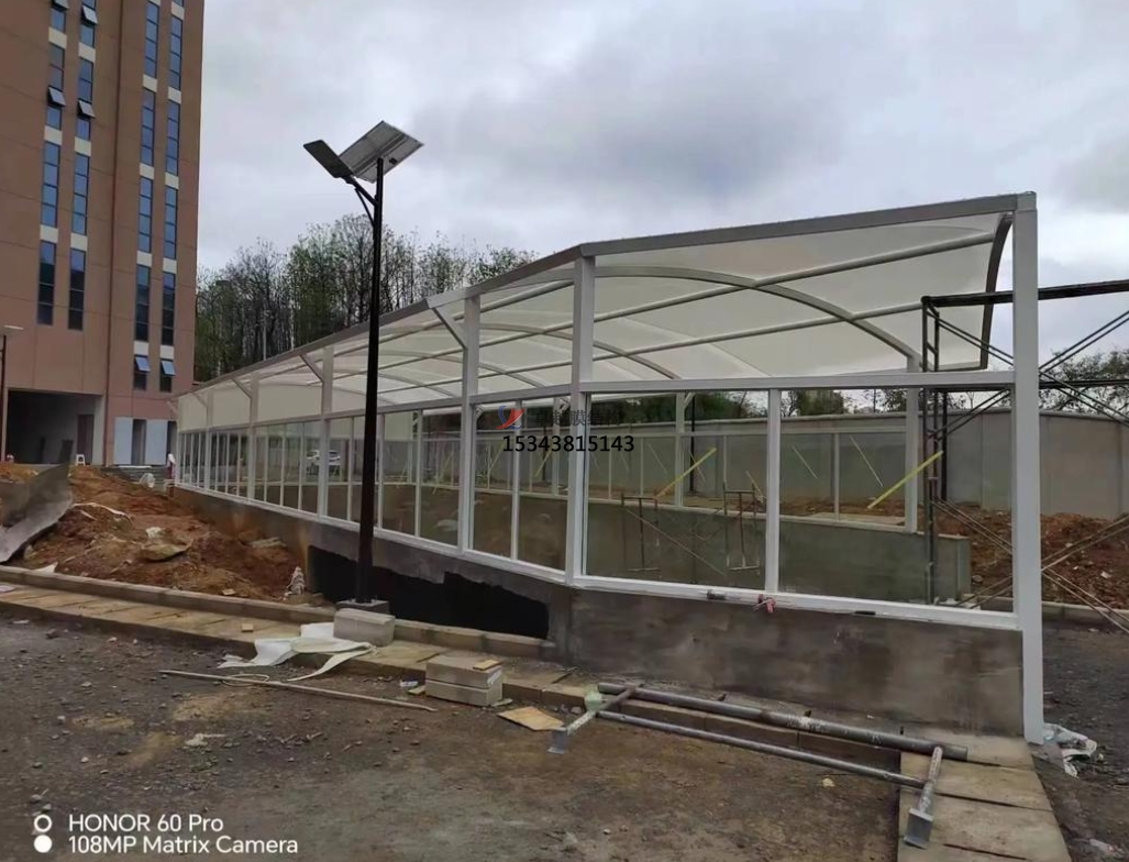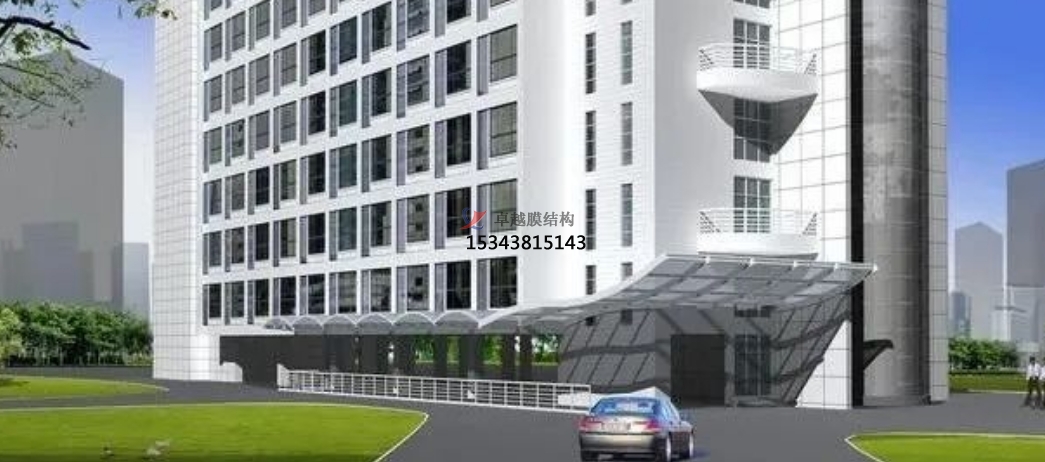 車庫入口膜結構雨棚的設計過程中,通過合理使用鋁合金材料,可以使得整個結構更加牢固可靠。