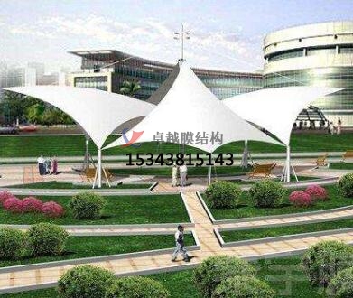 2. 藝術性:除了一般雨蓬不可比擬的實用、耐用、遮風擋雨的功能外,張拉膜景觀雨蓬更是一座雕塑,一件藝術品,給人美的視覺享受。其柔美,其曲線,其剛柔并濟,其豐富造型,其潔白無瑕,讓人眼前一亮,回味悠長。