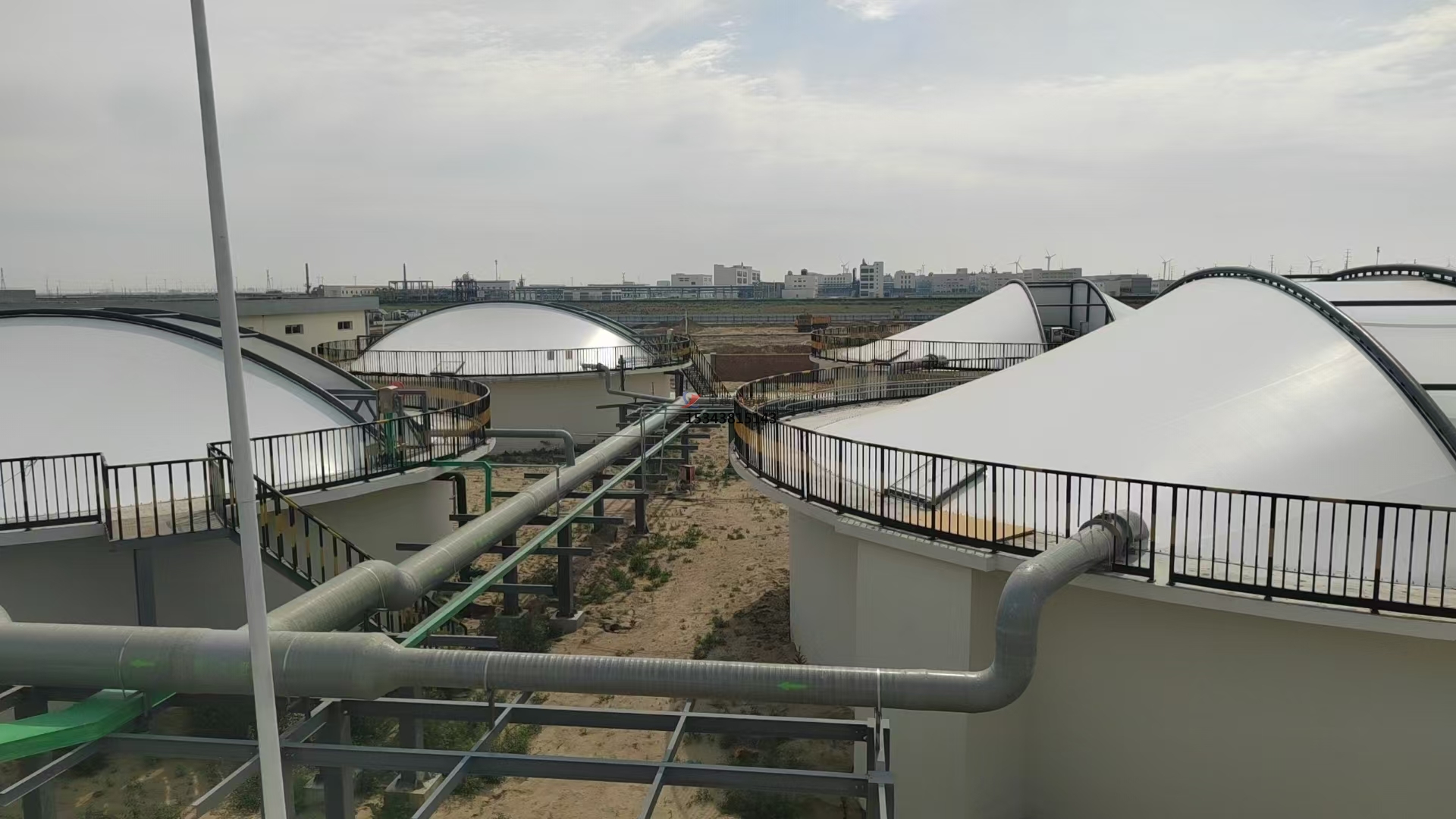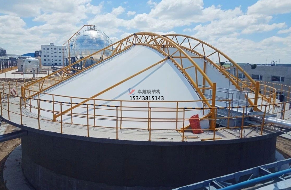 污水池反吊膜,顧名思義,是一種將薄膜材料以反吊的方式覆蓋在污水池上方的結構。這種結構通過鋼架或索網(wǎng)等支撐體系,將膜材料緊繃并固定于污水池上方,形成一個密閉或半密閉的空間,有效隔絕污水池內的惡臭氣體和有害物質,防止其對外擴散,同時保護膜材料免受污水池內腐蝕性氣體的侵蝕。