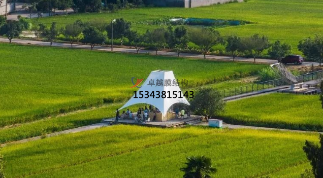 設(shè)計方于是設(shè)想了一種快速搭建的輕型結(jié)構(gòu):塔(樓梯)在中間和架在水池上的操作空間形成一個鋼結(jié)構(gòu)的整體,樁基打到池底以下的持力層,形成穩(wěn)定的核心結(jié)構(gòu);塔頂和平臺的四角以張拉膜結(jié)構(gòu)和鋼索拉接就是亭子的屋頂,形成輕質(zhì)的半透明的外部結(jié)構(gòu)。建成后塔亭經(jīng)常聚集了很多人,有當?shù)氐拇迕瘢杏慰?,還有小動物。他們或談天,或嬉鬧,或休息,或登上塔頂遠望,這正是設(shè)計最初的愿景。