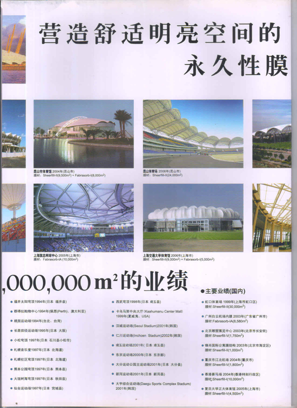 圣戈班工業(yè)薄膜為市場提供高性能聚合物薄膜、微孔過濾膜、薄膜圖層、復(fù)合薄膜和壓敏膠帶等多種產(chǎn)品近40多年,在相關(guān)行業(yè)中具有領(lǐng)先的地位。在諸多建筑中,我們都能看到圣戈班的影子,其中就有被很好的建筑師青睞的PTFE的建筑膜,實(shí)際上它就是圣戈班SHEERFILL®建筑網(wǎng)格布。
